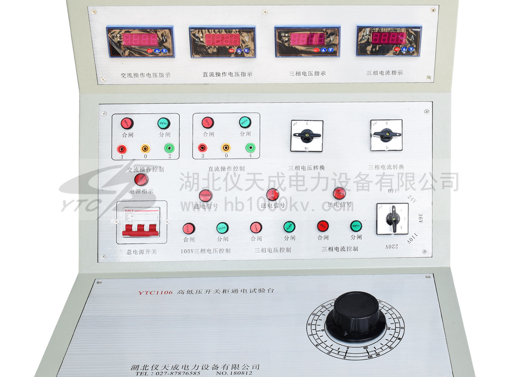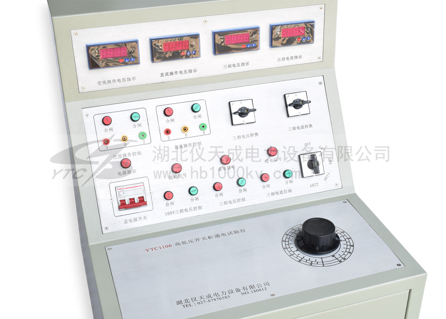 YTC1106高低壓開關柜通電試驗臺,用于高低壓開關柜生產廠家對所生產的高低壓開關柜進行出廠前的各項通電試驗。