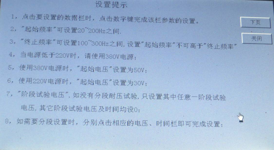 如果沒有階段性耐壓試驗時,只需設(shè)置一個階段試驗電壓值和相應(yīng)的試驗時間,其它階段試驗電壓和試驗時間設(shè)為0。