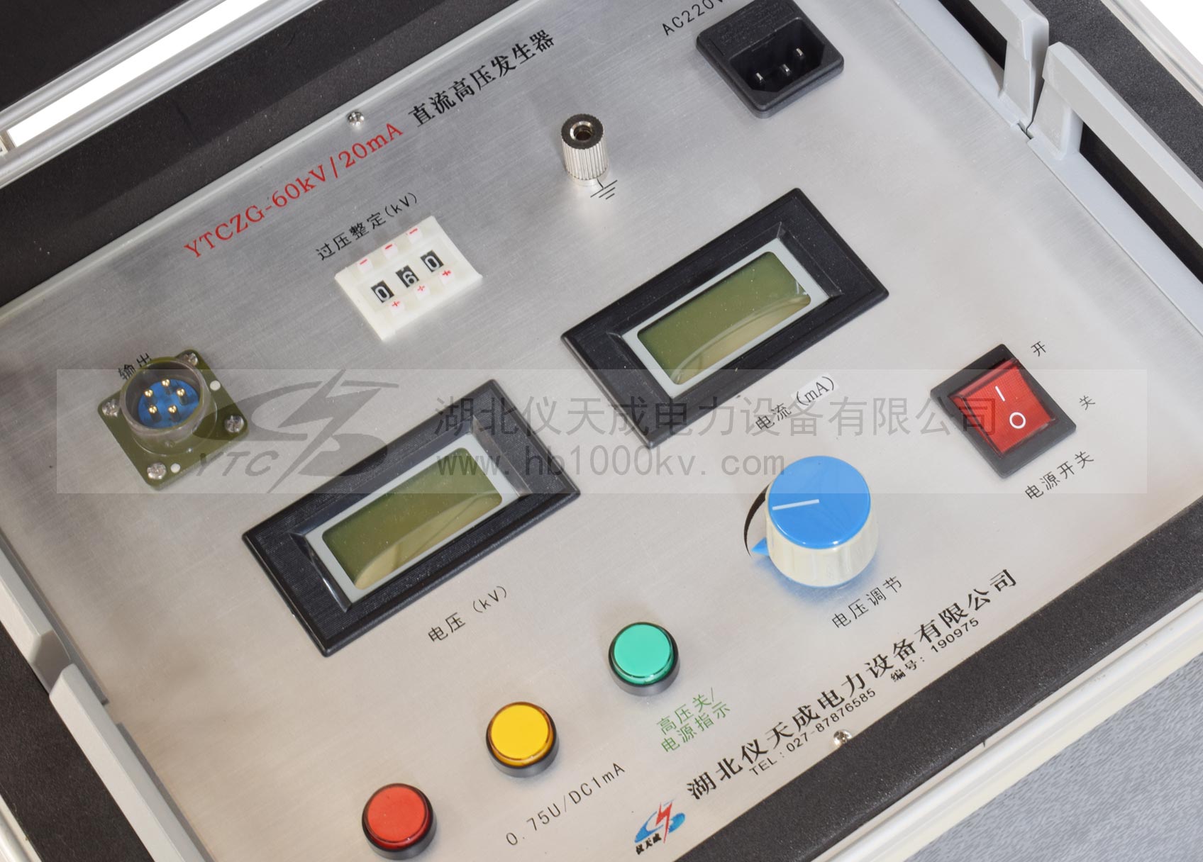 YTCZG-60kV/20mA直流高壓發生器主要適用于電力部門、工礦、冶金、鋼鐵等企業動力部門對氧化鋅避雷器、電力電纜、變壓器、發電機等高壓電氣設備進行直流耐壓試驗。