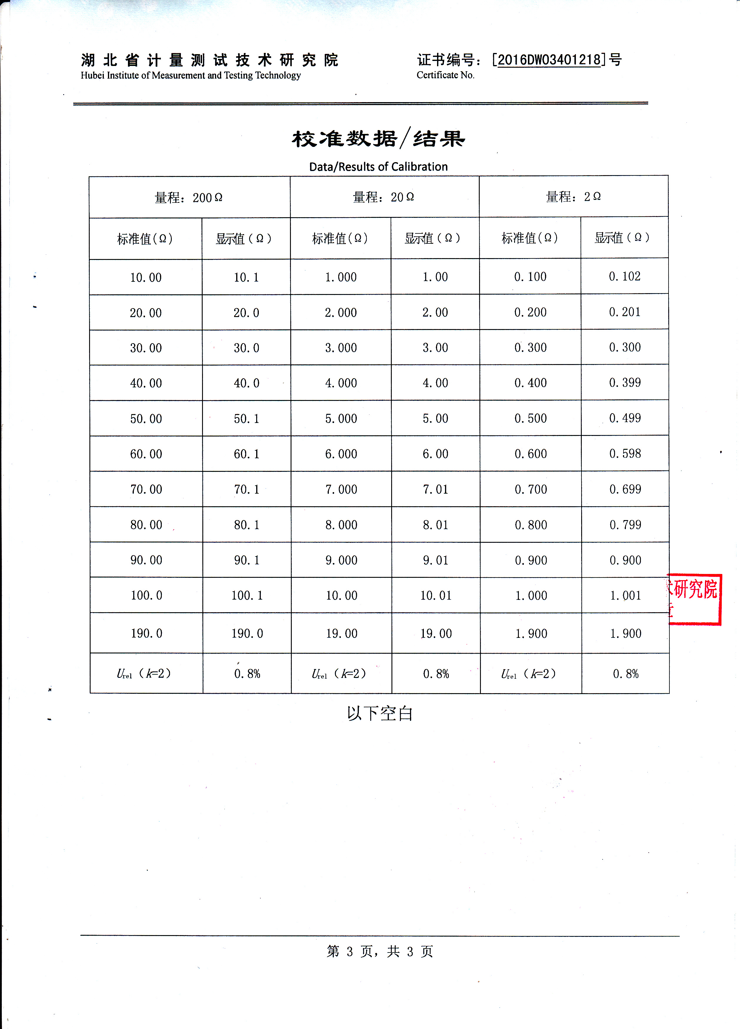 測量精度及分辨率 精度 0~0.2Ω≤±3%±1d