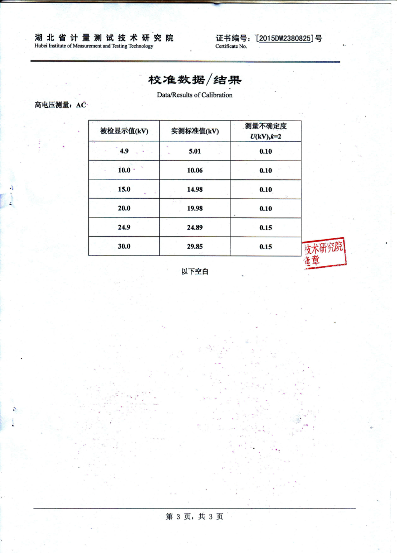 測量數(shù)據(jù) 可顯示打印每只被試品電壓值;泄漏電流值