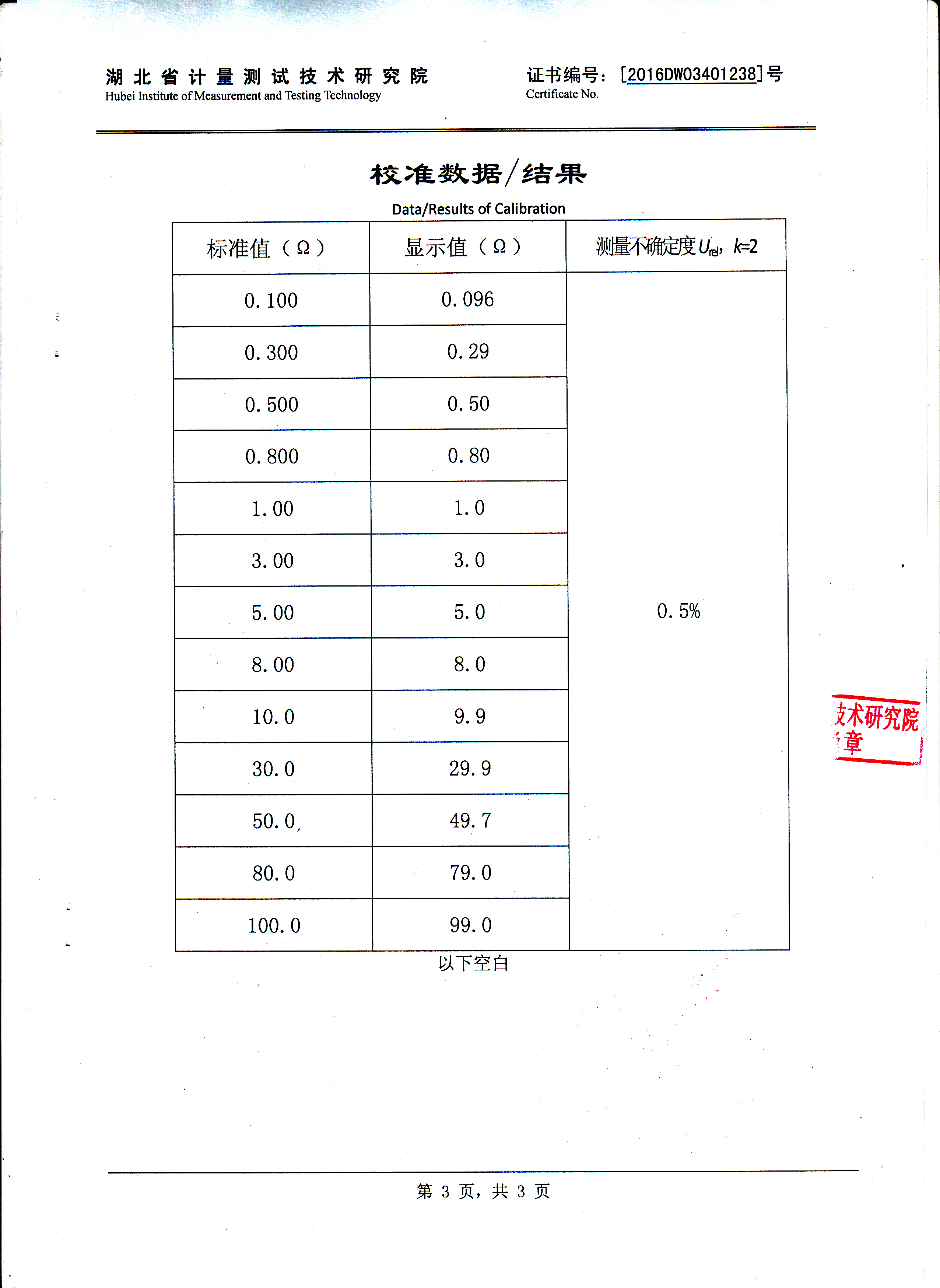 1.0Ω-49.9Ω 0.1Ω ±(1%+0.1Ω)
