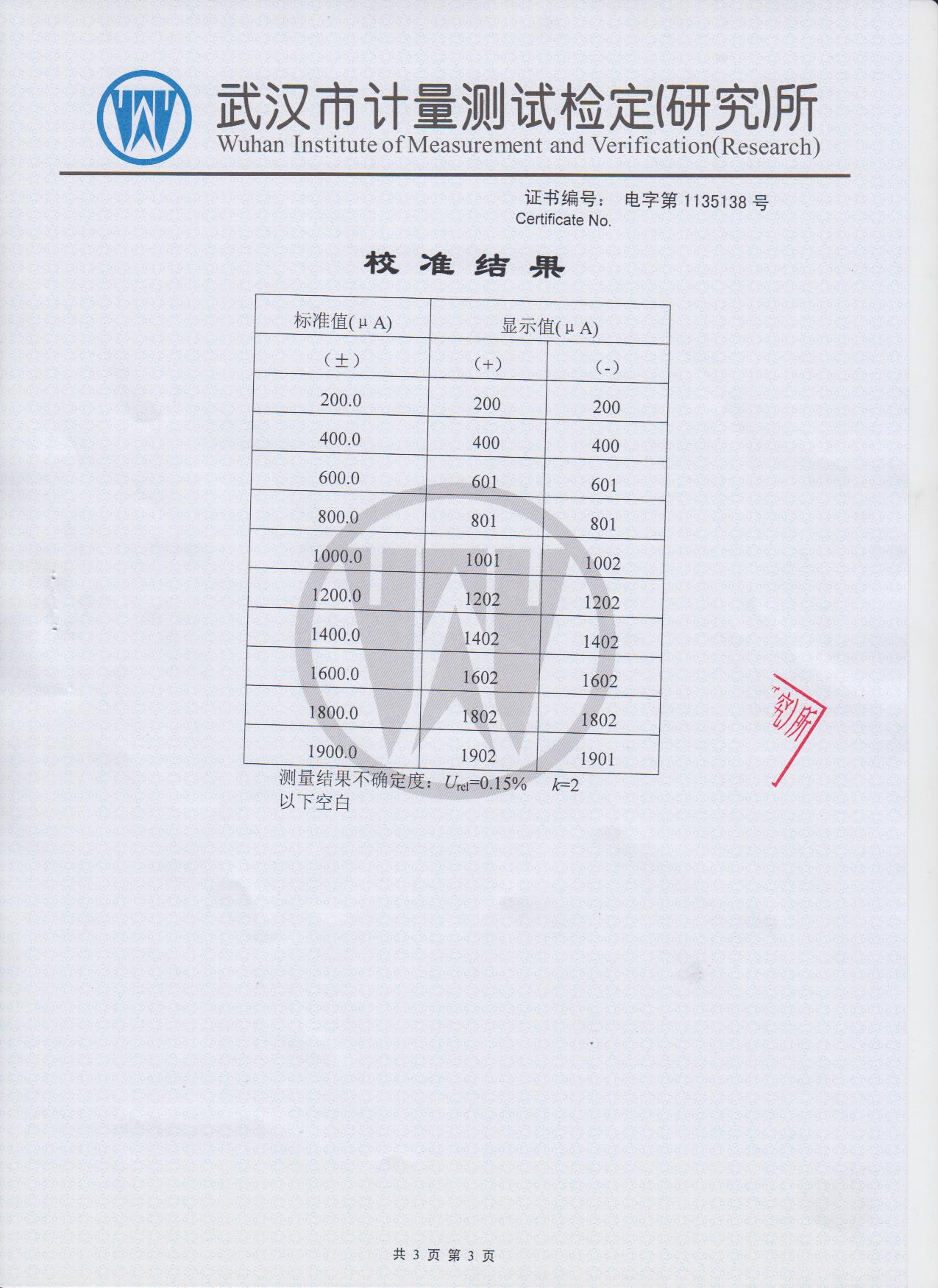 量程 0~1.999mA(Ⅰ型)   0~3.99mA(Ⅱ型)