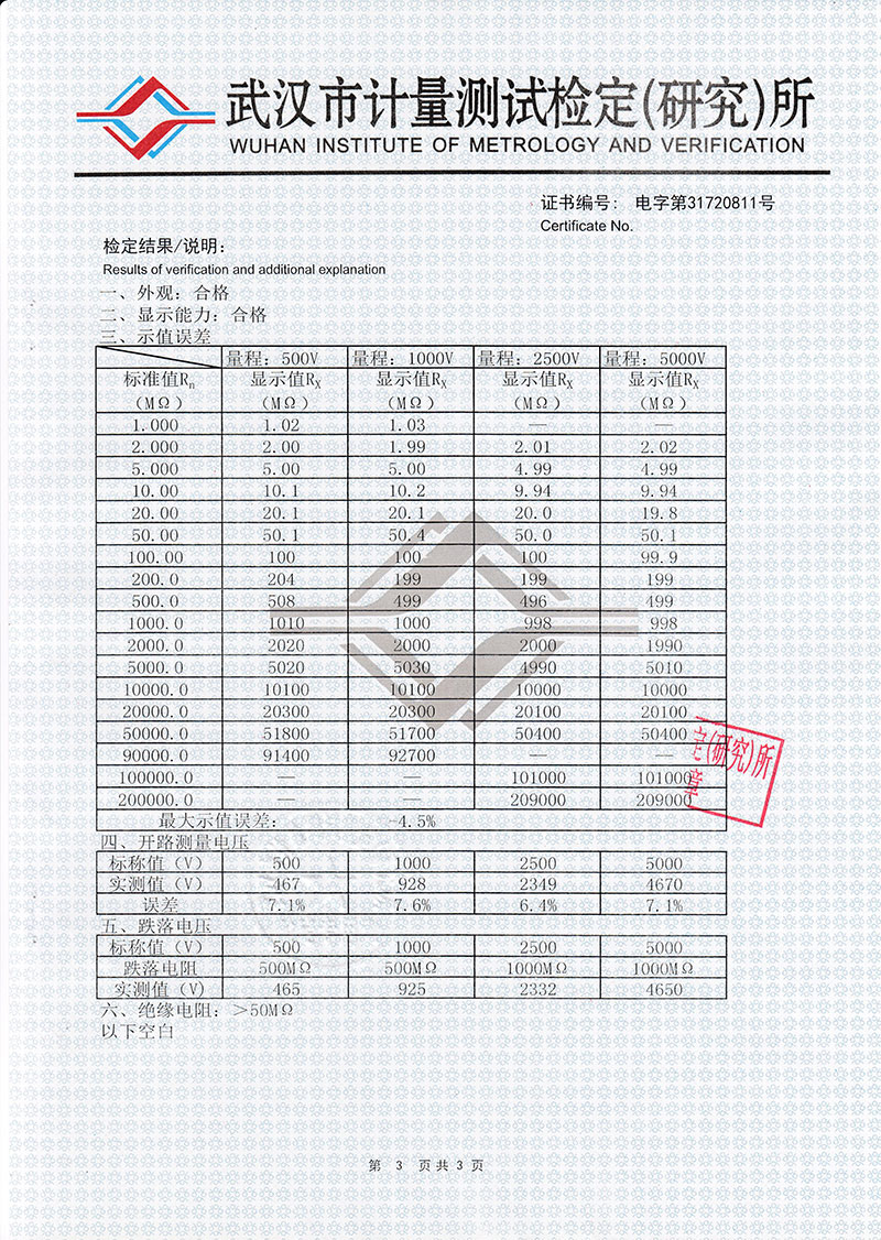 測試精度 1 MΩ~20 MΩ誤差 ±10%FS(FS為滿量程值)