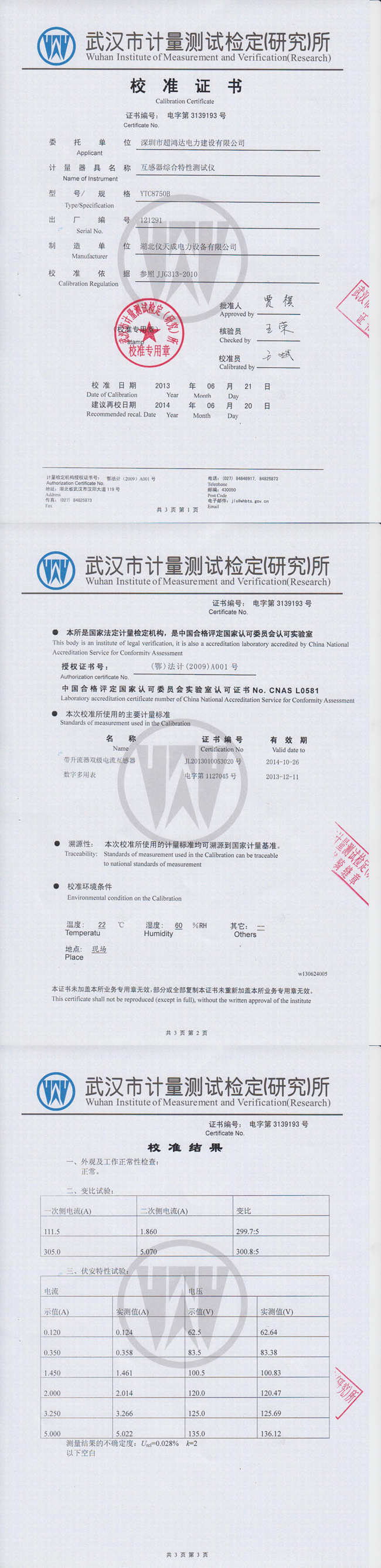 YTC8750B互感器綜合特性測試儀資質證書