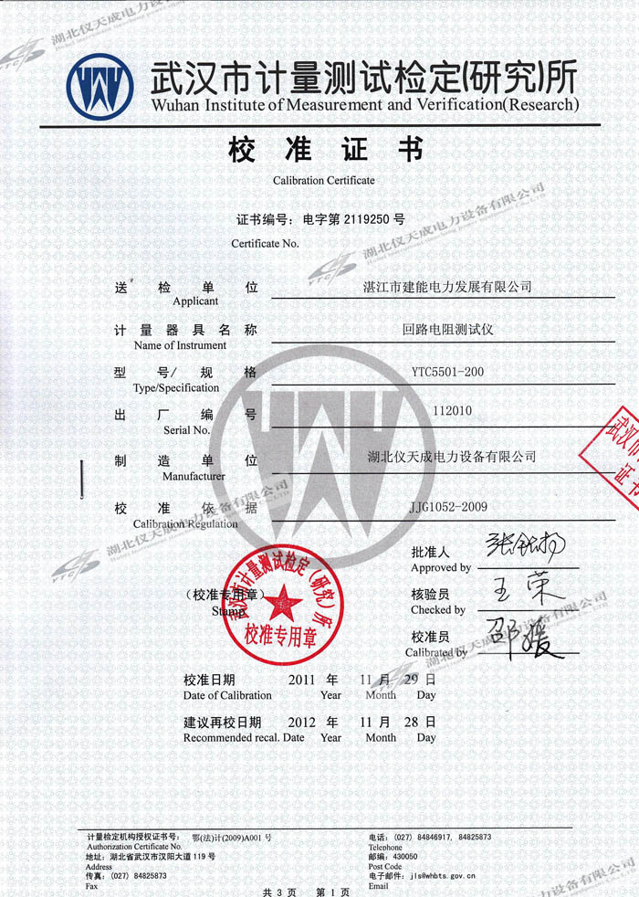 轉(zhuǎn)載:"YTC5501-200A回路電阻測(cè)試儀的資質(zhì)證書" 請(qǐng)注明來源于儀天成電力。 更多技術(shù)問題請(qǐng)致電儀天成電力客戶服務(wù):027-87876585,技術(shù)部專線:027-87876585,在線客服:719388481