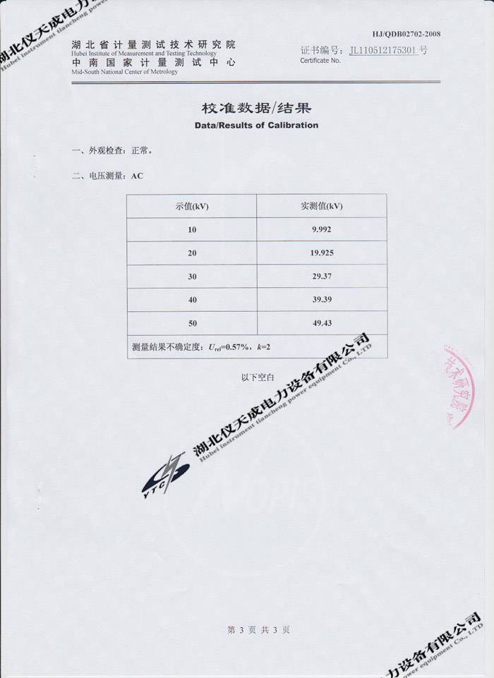 轉載:"YD-JZ-50kVA/50kV油浸式試驗變壓器的資質證書" 請注明來源于儀天成電力。 更多技術問題請致電儀天成電力客戶服務:027-87876585,技術部專線:027-87876585,在線客服:719388481