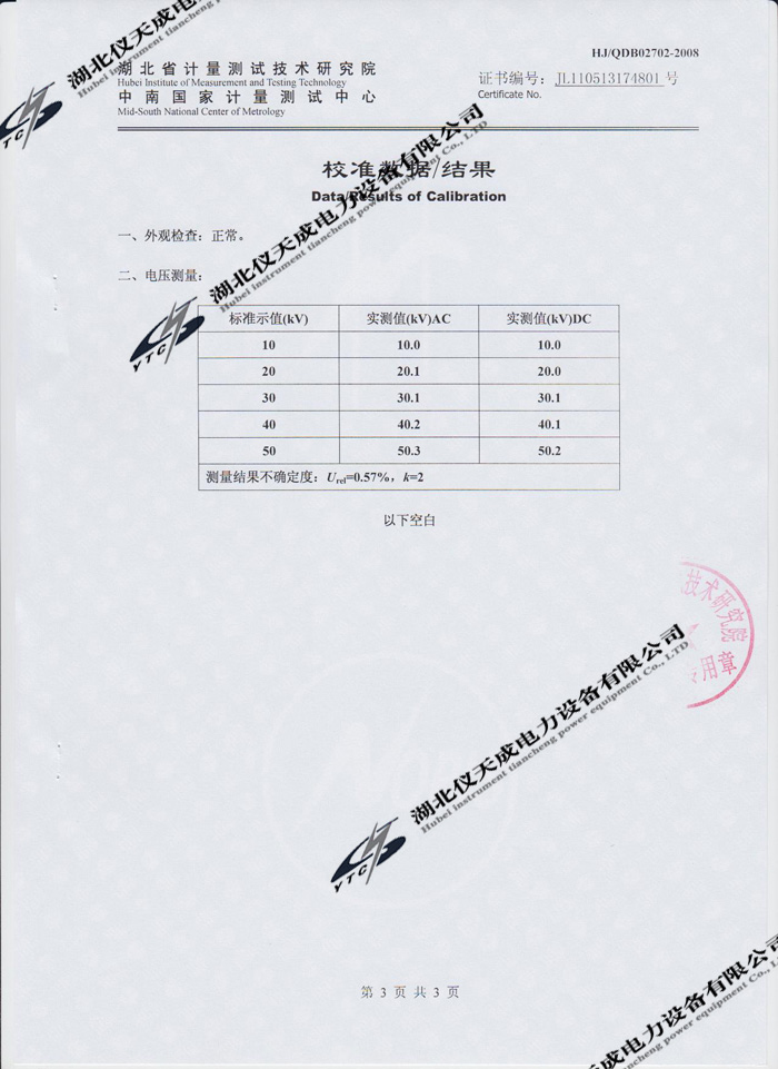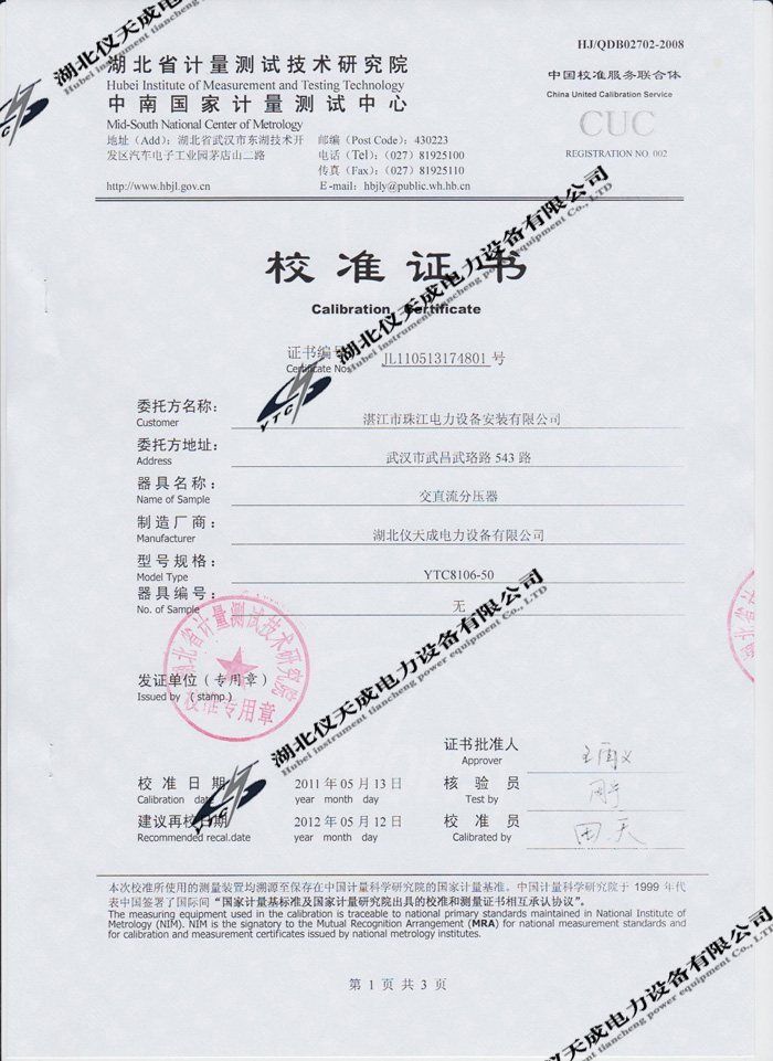 轉(zhuǎn)載:"YTC8106-50交直流分壓器的資質(zhì)證書" 請注明來源于儀天成電力。 更多技術(shù)問題請致電儀天成電力客戶服務(wù):027-87876585,技術(shù)部專線:027-87876585,在線客服:719388481